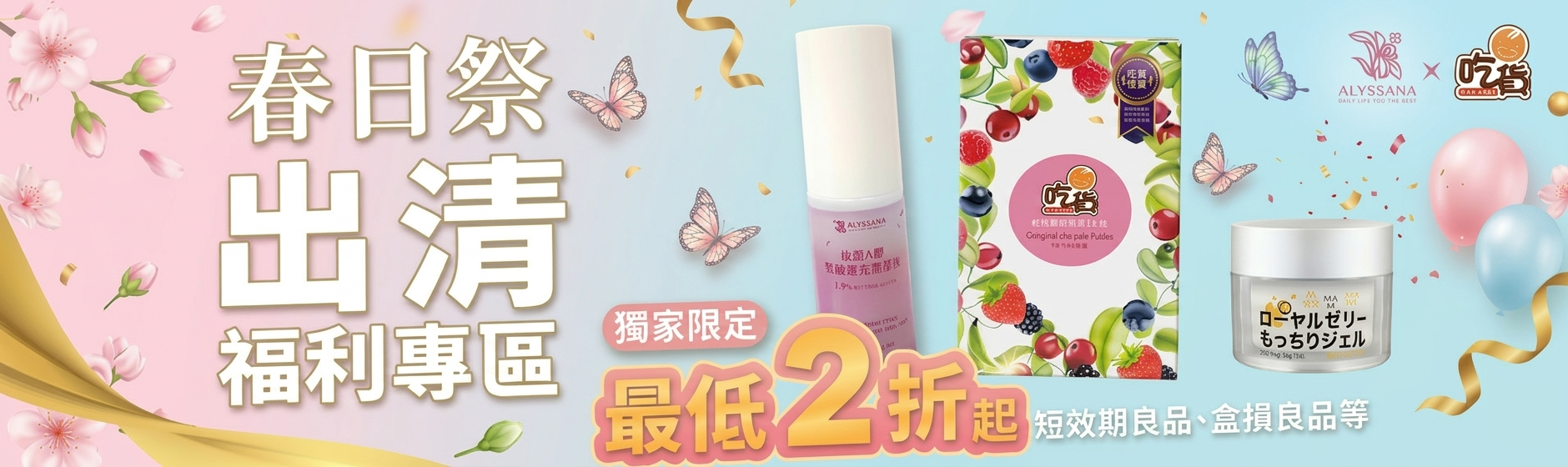 【下殺-短效良品】ALYSSANA 煥顏A醇緊緻透亮精華液30ml (效期2026/8/1) 限時特價NT$399 原始價格:NT$399。NT$120目前價格:NT$120。 加入購物車 【5折!超值組合】吃貨-水蜜桃膠原C美妍凍(7入/盒) (x4盒組) 限時特價NT$996 原始價格:NT$996。NT$498目前價格:NT$498。 加入購物車 【買1送1】吃貨-水蜜桃膠原C美妍凍 (20gx7條入/盒) (效期2026/9/10) 限時特價NT$249 – NT$2,366價格範圍:NT$249 到 NT$2,366 選擇規格 此產品有多種款式。 可在產品頁面選擇選項 【買1送1】吃貨-水解膠原蛋白粉(7g x 9入/盒) (效期2026/6/5) NT$320 加入購物車 限時特價 【超值組合】吃貨-莓果酵素順纖凍 (7入/盒) (x4盒組)NT$1,076 原始價格:NT$1,076。NT$1,054目前價格:NT$1,054。 有感升級 0脂肪、... 加入購物車 御鎮湘-黃金招財豬肉乾100g (效期2026/7/25)NT$150 【Q彈肉感與濃郁的芝... 加入購物車 【期間限定】御鎮湘-厚切豬肉條130g (口味可選: 黑胡椒、蜜汁、蒜味)NT$150 【選用台灣豬,使用豬... 選擇規格 此產品有多種款式。 可在產品頁面選擇選項 補貨中 【限量5件】ALYSSANA 金鑽無暇兩用粉餅12g (防水抗汗 不易脫妝)NT$399 打造柔嫩無瑕零毛孔、... 查看內容 123456789→ 限時特價 ALYSSANA 溫和洗淨胺基酸洗面乳100mlNT$299 – NT$2,300價格範圍:NT$299 到 NT$2,300 升級配方✨添加28%... 選擇規格 此產品有多種款式。 可在產品頁面選擇選項 補貨中 【下殺-微盒損良品】ALYSSANA蜂王乳凝露50ml (良品-正常效期)NT$550 原始價格:NT$550。NT$299目前價格:NT$299。 一瓶抵6瓶❗All ... 查看內容 限時特價 吃貨-加強版 葡萄糖胺MSM加強錠(60錠/瓶)NT$699 – NT$5,313價格範圍:NT$699 到 NT$5,313 行動保健的關鍵好夥伴... 選擇規格 此產品有多種款式。 可在產品頁面選擇選項 限時特價 【超值組合】吃貨-加強版 葡萄糖胺MSM加強錠(60錠/瓶) (x4瓶組)NT$2,796 原始價格:NT$2,796。NT$2,740目前價格:NT$2,740。 行動保健的關鍵好夥伴... 加入購物車 12345678→ ALYSSANA 仙女修護潤唇膏(8g/個) 限時特價NT$250 – NT$2,375價格範圍:NT$250 到 NT$2,375 選擇規格 此產品有多種款式。 可在產品頁面選擇選項 【超值組合】ALYSSANA 仙女修護潤唇膏(8g/個) (x4入組) 限時特價NT$1,000 原始價格:NT$1,000。NT$950目前價格:NT$950。 加入購物車 【超值組合】ALYSSANA 仙女修護潤唇膏(8g/個) (x2入組) 限時特價NT$500 原始價格:NT$500。NT$490目前價格:NT$490。 加入購物車 【超值組合】ALYSSANA 溫和洗淨胺基酸洗面乳100ml (x2入組) 限時特價NT$598 原始價格:NT$598。NT$532目前價格:NT$532。 加入購物車 【限量5件】ALYSSANA 金鑽無暇兩用粉餅12g (防水抗汗 不易脫妝) 補貨中NT$399 查看內容 ALYSSANA 膠原蛋白Q10彈力緊緻霜50ml NT$399 加入購物車 吃貨-莓果酵素順纖凍 (20g x7條入/盒) 限時特價NT$269 – NT$2,556價格範圍:NT$269 到 NT$2,556 選擇規格 此產品有多種款式。 可在產品頁面選擇選項 【買1送1】吃貨-水蜜桃膠原C美妍凍 (20gx7條入/盒) (效期2026/9/10) 限時特價NT$249 – NT$2,366價格範圍:NT$249 到 NT$2,366 選擇規格 此產品有多種款式。 可在產品頁面選擇選項 吃貨-加強版 葡萄糖胺MSM加強錠(60錠/瓶) 限時特價NT$699 – NT$5,313價格範圍:NT$699 到 NT$5,313 選擇規格 此產品有多種款式。 可在產品頁面選擇選項 吃貨-海藻鈣鎂D錠(30錠)(牛奶風味) 限時特價NT$360 – NT$3,420價格範圍:NT$360 到 NT$3,420 選擇規格 此產品有多種款式。 可在產品頁面選擇選項 【5折!超值組合】吃貨-水蜜桃膠原C美妍凍(7入/盒) (x4盒組) 限時特價NT$996 原始價格:NT$996。NT$498目前價格:NT$498。 加入購物車 【超值組合】吃貨-莓果酵素順纖凍 (7入/盒) (x4盒組) 限時特價NT$1,076 原始價格:NT$1,076。NT$1,054目前價格:NT$1,054。 加入購物車 ALYSSANA 逆齡修護水凝霜 ALYSSANA蜂王乳凝露 ALYSSANA小黑蚊剋星清涼軟膏 吃貨-防彈系列 吃貨-水蜜桃膠原C美妍凍 吃貨-夜酵素代謝EX錠