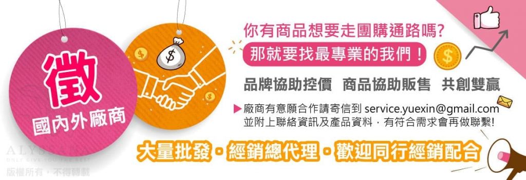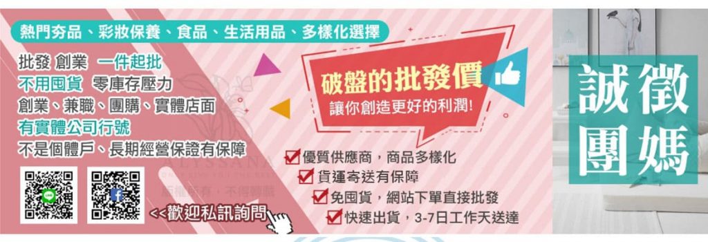 與海內外上百家廠商合作,商品完整且多元化,至今累積多樣團購和批發商的配合,對於商品品質及顧客售後服務也具保障,期許成為您做生意的最佳夥伴 !