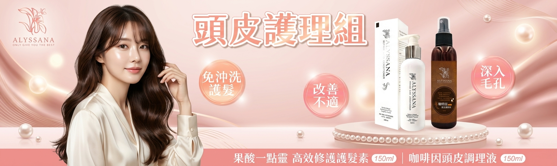 遠離頭髮靜電困擾-ALYSSANA 頭皮護髮組👒(果酸一點靈護髮素+咖啡因頭皮調理液)