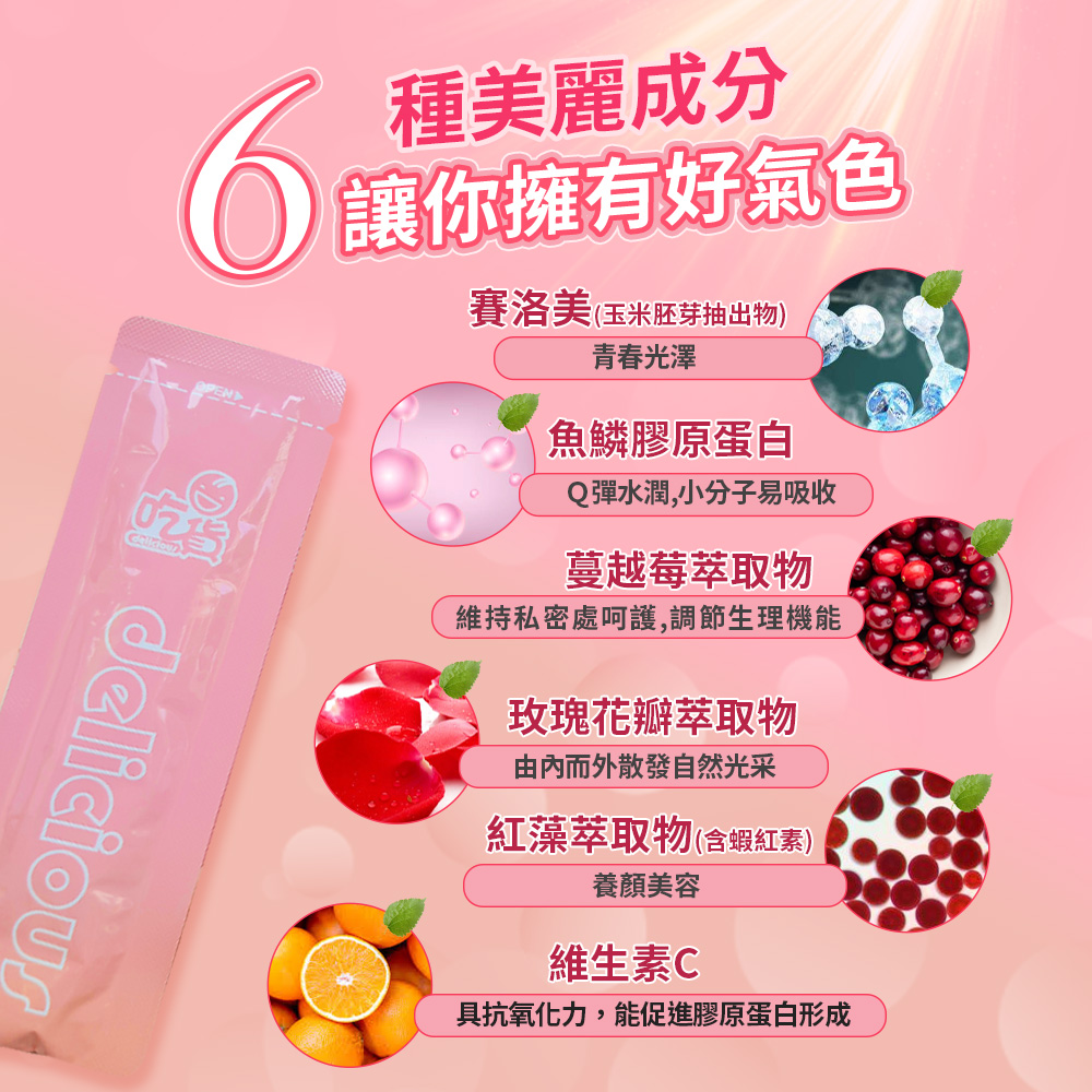 魚鱗膠原蛋白,Q彈水潤,小分子易吸收 - 含蔓越莓萃取物,幫助維持私密呵護,調節生理機能