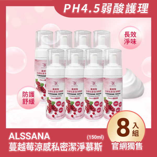 【超值組合】ALYSSANA 蔓越莓涼感私密潔淨慕斯150ml (x8入組)