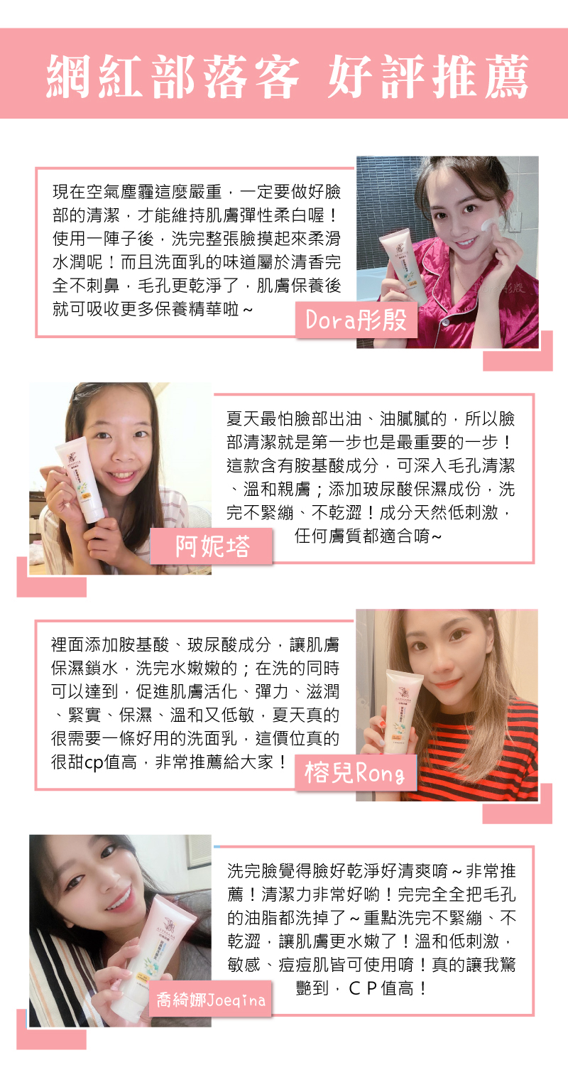 • 溫和低刺激,小孩、孕婦、弱敏感、痘痘肌皆可使用 。