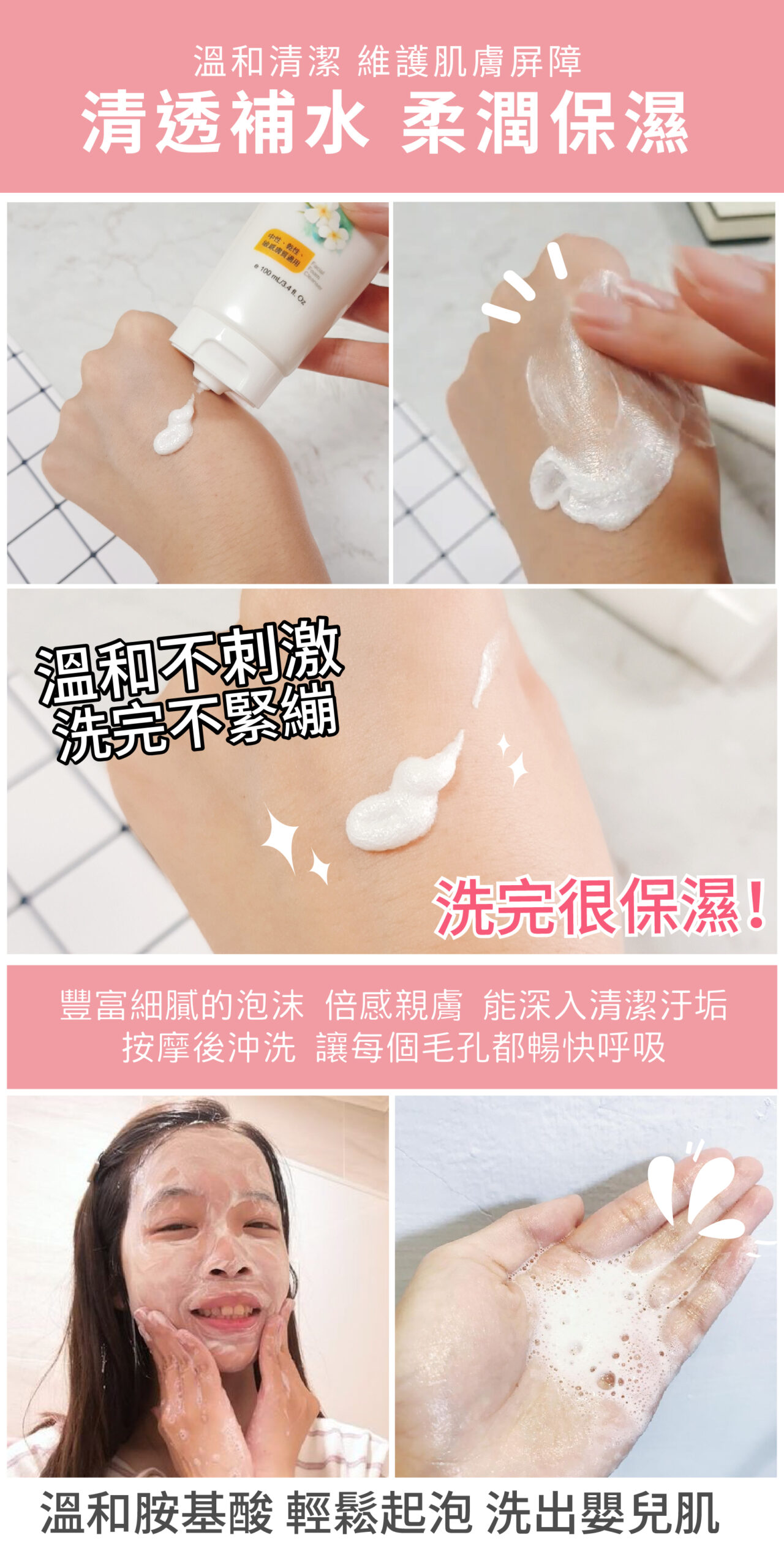 • 添加玻尿酸保濕成份,洗完不緊繃、不乾澀,使肌膚更水嫩。